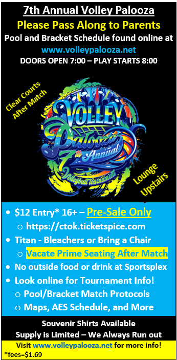Volley Palooza souvenir shirts and other volleyball attire will be available for purchase.